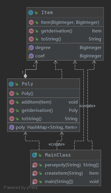 第一次作业是简单的对幂函数求导,由于这是第一次做作业,完全不知道什么是面向对象的思想,完全是以面向过程的方式来完成本次作业的,只有主类,表达式类和项类。