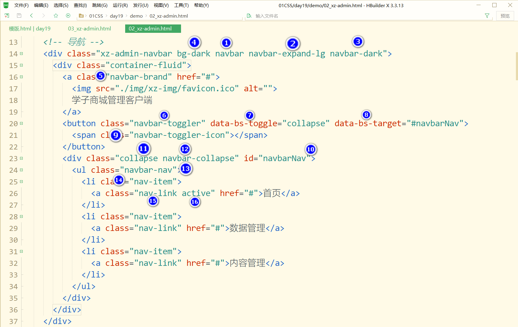 data-bs-target="#zdy-b"负责切换的目标元素,需要关联目标元素的id属性值