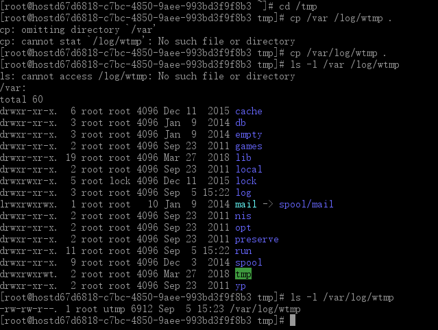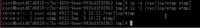 变换目录到/tmp,并将/var/log/wtmp 复制到/tmp观察属性