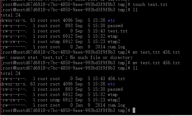 切换到/tmp 目录下,用touch新建一个test.txt,然后用mv 重命名为456.txt