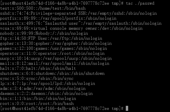 tac:由最后一行开始显示,有没有发现和cat是反过来写的