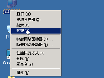 登录到实验主机上。右击“我的电脑”->“管理”,见下图: