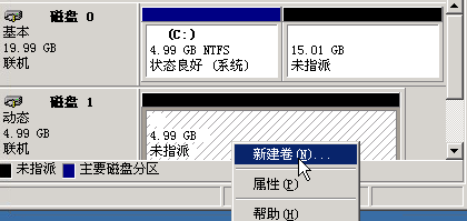 在新添加的动态磁盘上创建卷: