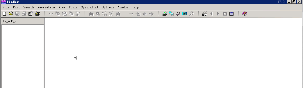 打开桌面tools\WinHex文件夹,双击运行WinHex程序,出现如下窗口: