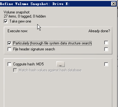 勾选“获取新快照”与“彻底搜索文件系统数据结构”,然后点击“确定”: