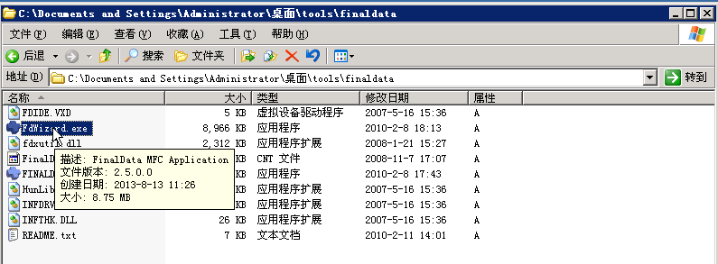 1、打开桌面上tools\finaldata文件夹,找到应用程序“FdWizard”