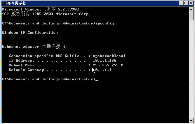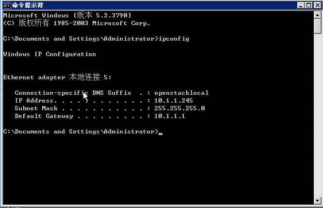 1、远程桌面方式登录到CA服务器,在CMD下查看本机IP地址: