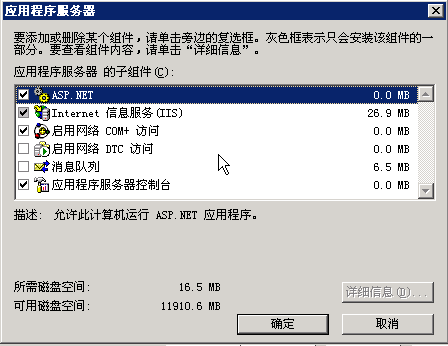 双击“应用程序服务器”,选中“ASP.NET”与“Internet信息服务(IIS)”,如下图: