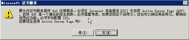 在安装完成后会提示启用Active Server Page,点击“确定”