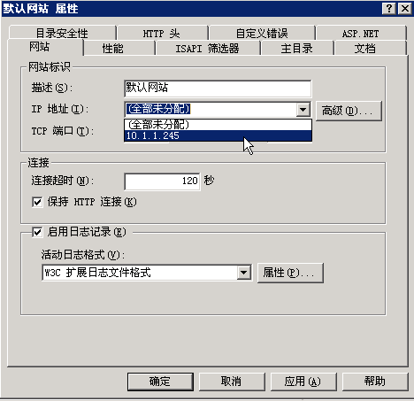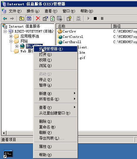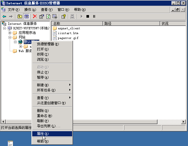 安装完成后,打开IIS,右键“默认网站”,选择“属性”: