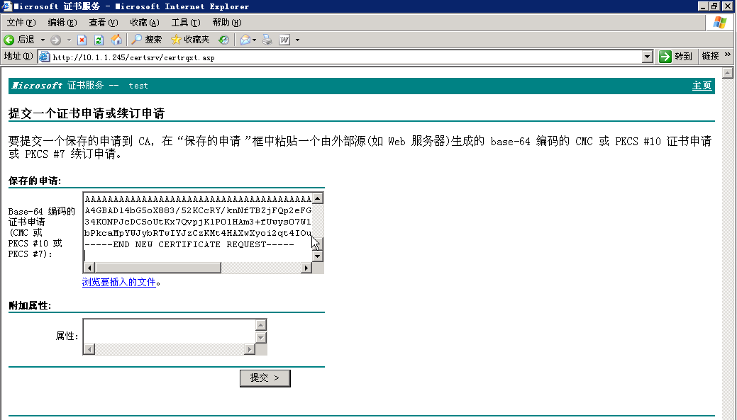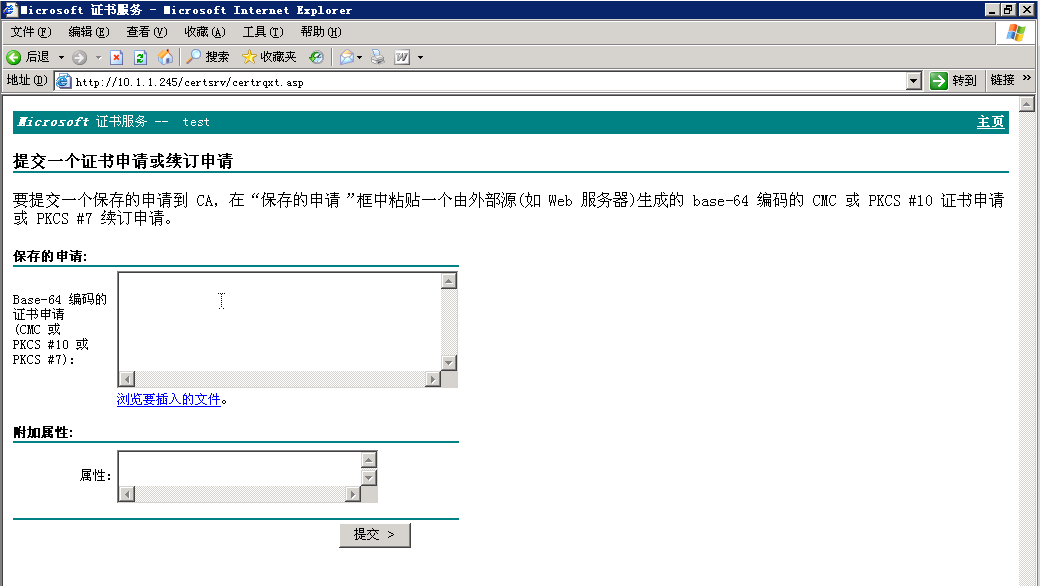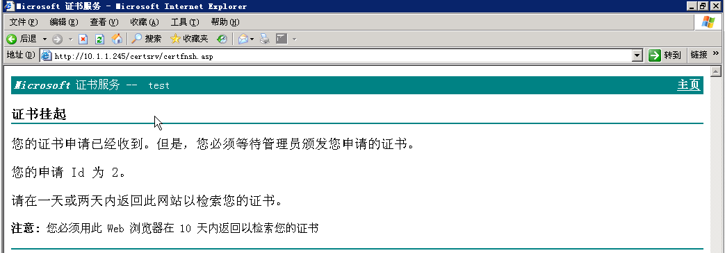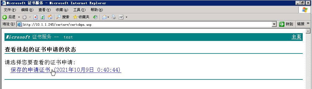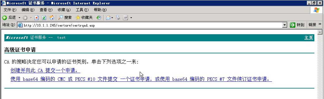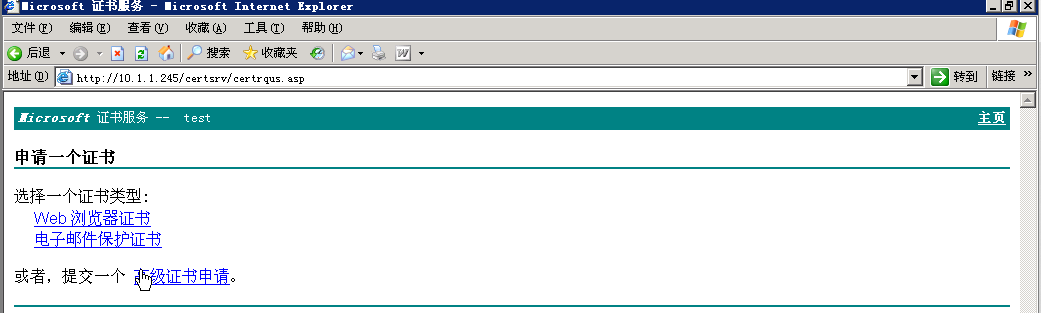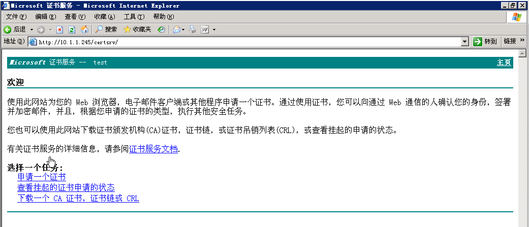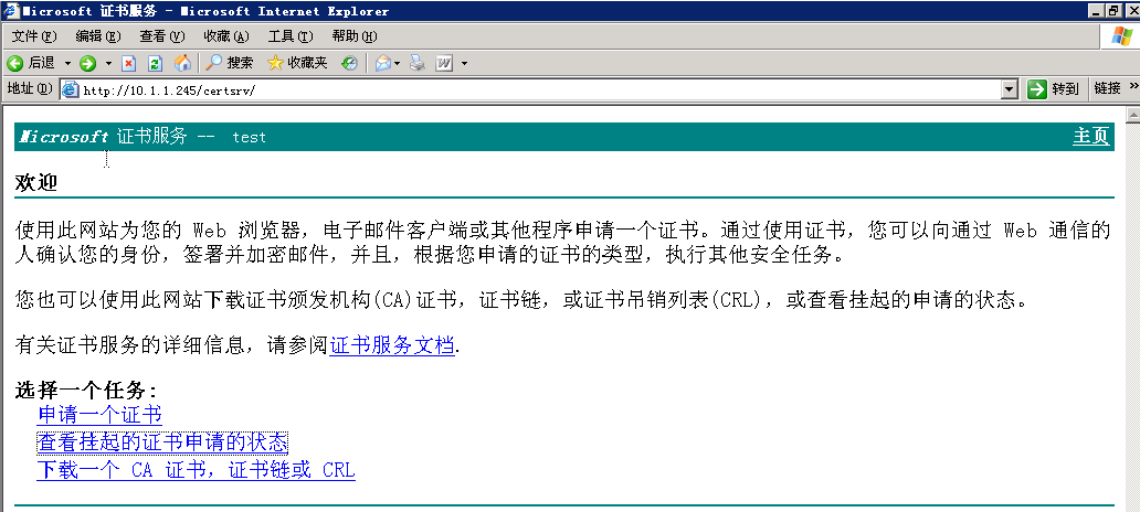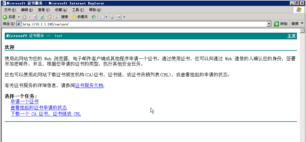 打开浏览器输入 http://10.1.1.245/certsrv/ 可以浏览证书服务器