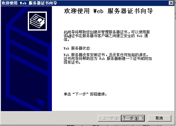 在“默认网站属性”中选择“目录安全性”标签,点击“服务器证书”: