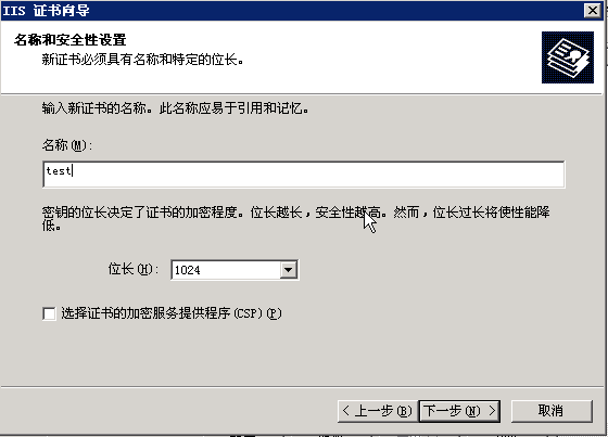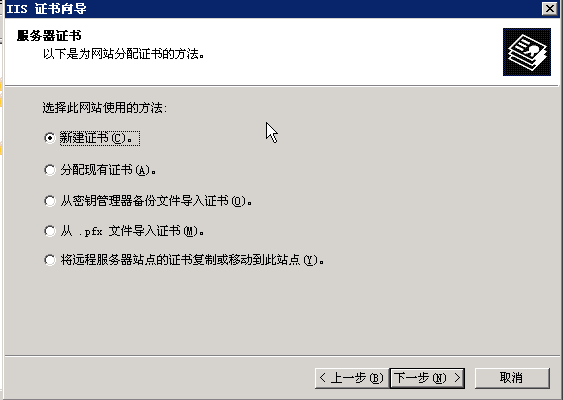 出现如下对话框,保持默认选项“新建证书”不动,继续下一步: