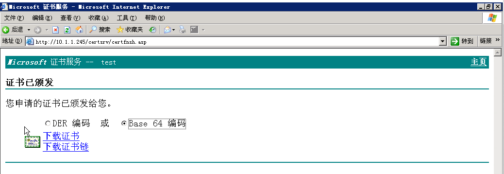 打开浏览器,输入刚才我们搭建的证书服务器地址: