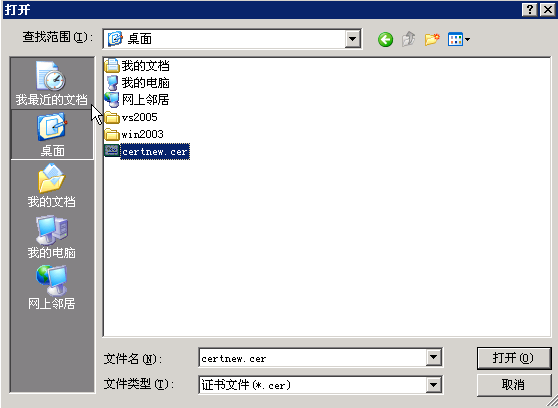 将证书保存到桌面,以便查找,可以看到桌面上的证书文件。