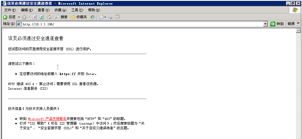 输入https://10.1.1.196 (按照实际情况),会出现一个证书安全问题的确认,单击“是”,进行浏览: