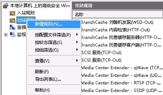 ②用户可以创建入站和出站规则,从而阻挡或者允许特定程序或者端口进行连接;可以使用预先设置的规则,也可以创建自定义规则。“新建规则向导”则可以帮用户逐步完成创建规则的步骤。