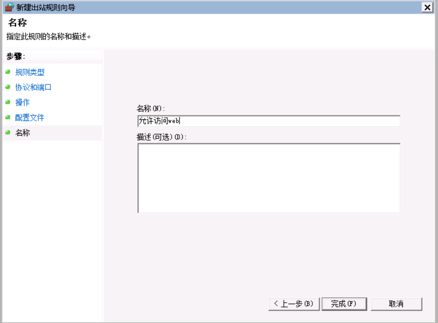 5、在“名称”界面,为该规则指定一个名称和描述。