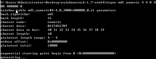 使用命令:rtgen md5 numeric 4 4 0 3000 400000 0