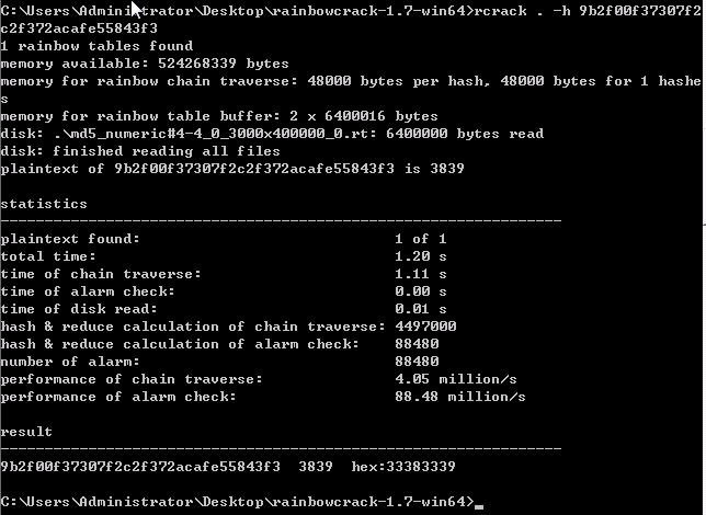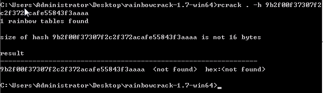 对于单个的哈希值,我们可以直接用rcrack.exe . -h hashnum来进行破解:
