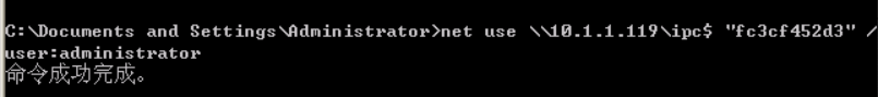 命令:net use \\10.1.1.119\ipc$ "主机B的密码" /user:administrator