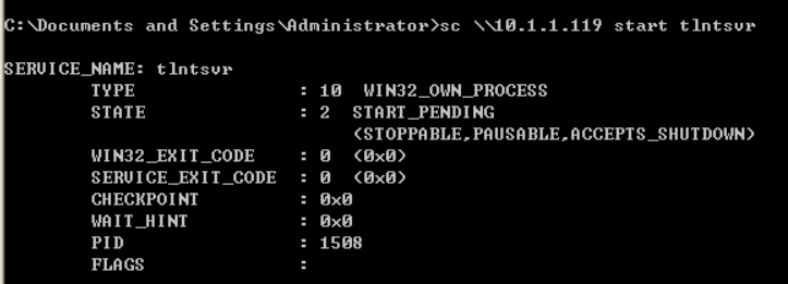 命令:sc \\10.1.1.119 config tlntsvr start= auto