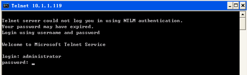 telnet连接建立之后,可输入用户名密码等相关信息进行登录,telnet服务登录到远程主机: