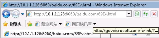 11、在 Win7靶机打开IE,访问http://10.1.1.128:8060/baidu.com,模拟受害者误点击网页,靶机IE如下图所示,攻击者Metasploit显示如下图所示信息表明攻击成功。
