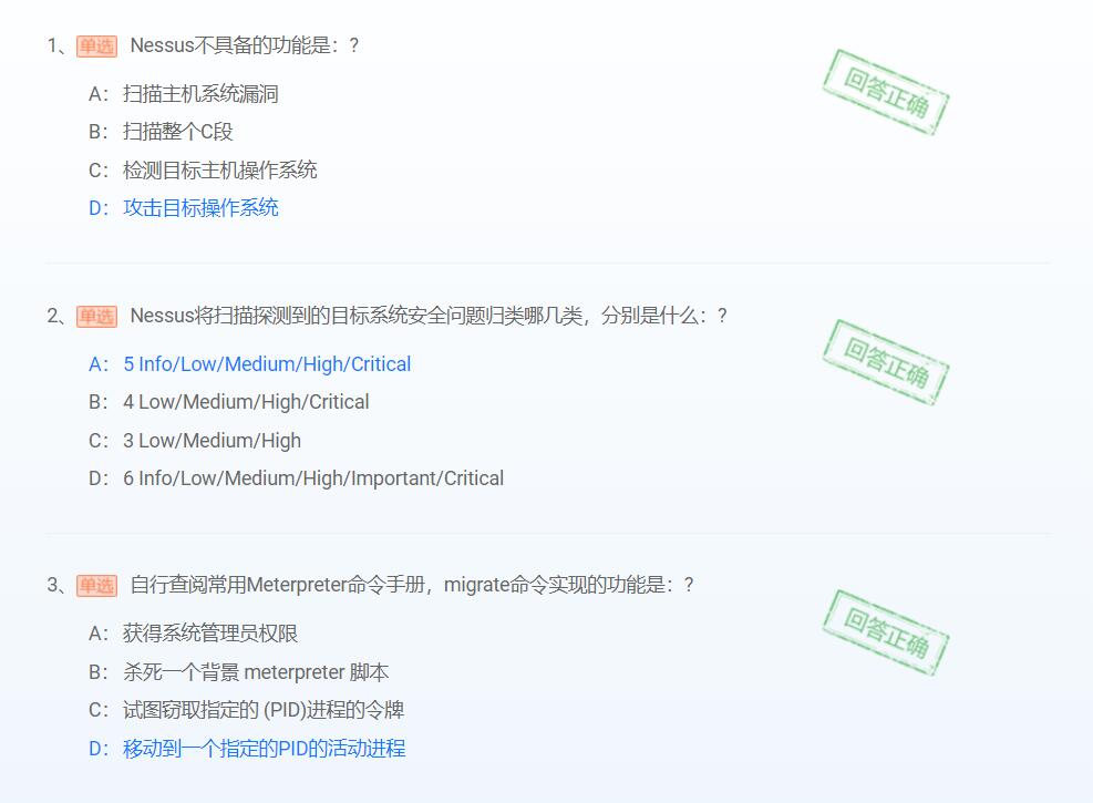 通过该实验熟悉Nessus漏洞扫描工具的安装和主机漏洞扫描的方法,学会利用Nessus扫描结果筛选合适的Metasploit攻击模块进行安全测试、攻击。