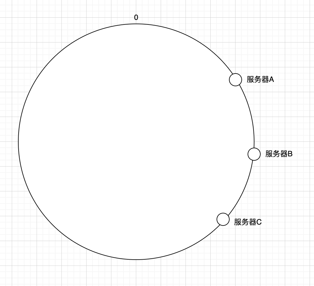 首先我们还是有三台服务器,分别是服务器A,服务器B,服务器C,那么在我们的生产环境中,我们对这三台服务器的ip地址进行哈希,用哈希后的结果对2^32进行取模运算,得到的结果就是服务器的位置