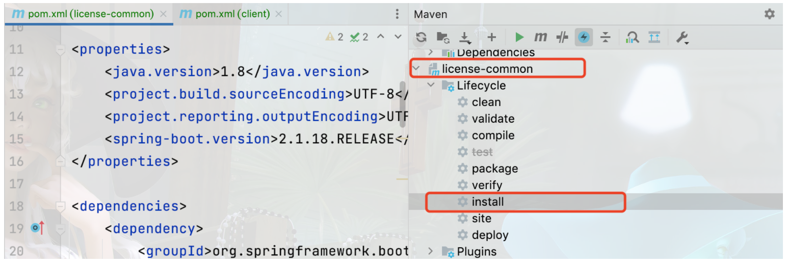 执行idea中的打包,也就是 mvn install