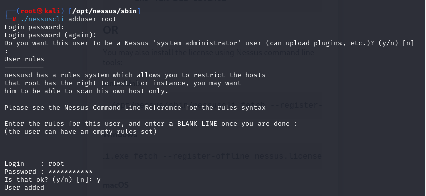 - 如果创建不了用户,在/opt/nessus/sbin目录里创建用户,重启nessus后访问网站