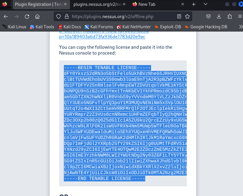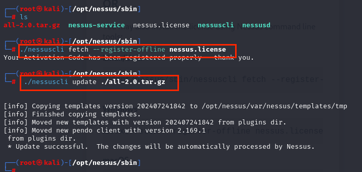 - 获取 nessus.license 激活包和更新包,并手动激活更新