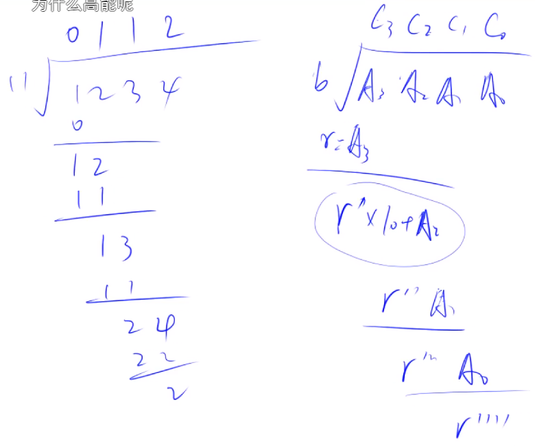 #include <iostream> #include <vector> #include <algorithm> using namespace std ; vector<int> div(vector<int> &A , int b, int &t) { vector<int> C; t=0; for(int i=A.size()-1 ; i>=0 ; i-- ) { t=t*10+A[i]; C.push_back(t/b); t%=b ; } reverse(C.begin(), C.end()); while(C.size()>1 && C.back()==0) C.pop_back(); return C; } int main(){ vector<int> A,C ; string a; int b,r ; cin>>a>>b ; for(int i=a.size()-1; i>=0;i--) A.push_back(a[i]-'0'); C = div(A,b,r); for(int i=C.size()-1; i>=0;i--) printf("%d",C[i]); cout<<endl<<r; return 0; }