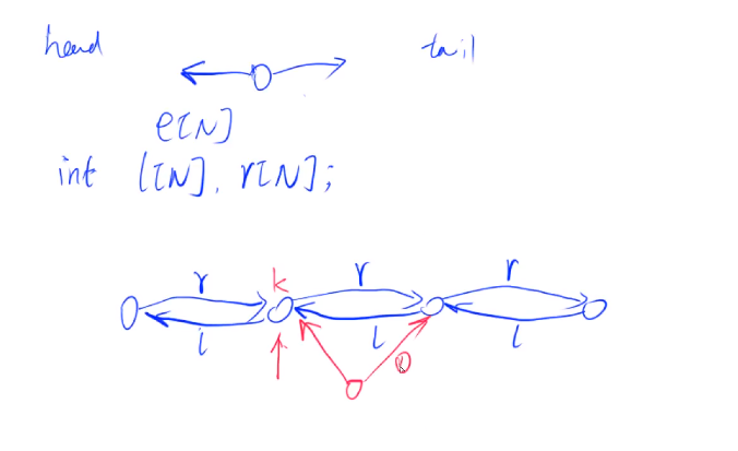 #include <iostream> using namespace std; const int N = 1e6+10; int e[N], idx ; //不带头结点 int l[N],r[N] ; //左、右指针 void init() { // 0为左端点、1为右端点 r[0] = 1 ; l[1] = 0 ; idx = 2 ; } void add( int k, int x) //在k的右边插入 { e[idx] = x ; l[idx] = k ; r[idx] = r[k] ; l[r[k]] = idx ; // r[k] = idx ; // 这两个顺序不能反 idx ++ ; } void remove(int k) { r[l[k]] = r[k] ; l[r[k]] = l[k] ; } int main(){ init() ; int m ; cin>>m ; while(m--) { int k,x ; string op ; cin>>op ; if(op=="IR") { cin>>k>>x ; add(k+1,x) ; } else if(op=="D"){ cin>>k; remove(k+1) ; } else if(op=="IL"){ cin>>k>>x; add(l[k+1],x); } else if(op=="L"){ cin>>x ; add(0,x) ; } else{ cin>>x; add(l[1],x) ; } } for(int i=r[0]; i!=1 ; i = r[i]) cout<<e[i]<<' ' ; return 0; }