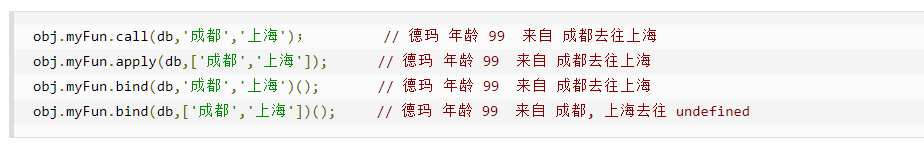 - apply():后续的参数存储在一个数组中,再将该数组作为参数传入 apply(obj,[arg1,arg2...])
