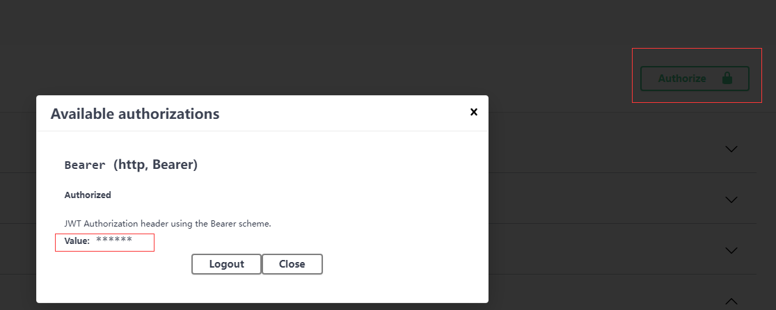 第一步先在验证部分请求登录,登录后swagger 页面会自动把token值 加入到页面内