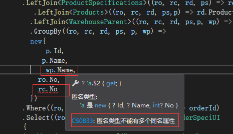 sqlsugar groupby 匿名类型不能多个同名属性的解决写法