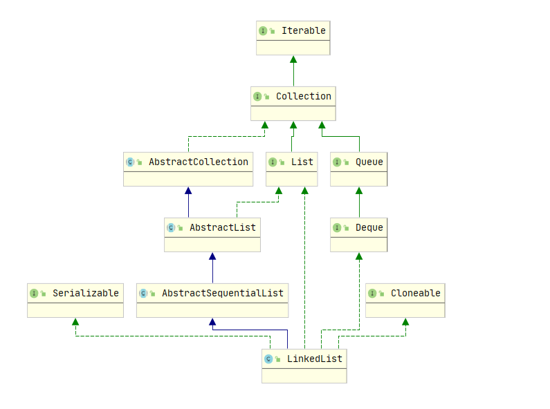 - LinkedList还是一个双端队列,具有队列、双端队列、栈的特性。