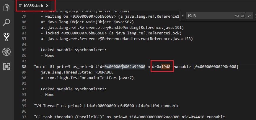 打开文件 c:/10856.stack,搜索19d8,如下图所示