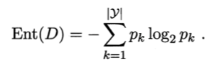 当前样本集合D 中第 k 类样本所占的比例为 pk(k其实是下标,微信不好打),则 D 的信息熵定义为