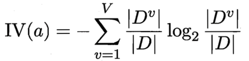 由上图我们可以看出,信息增益率=信息增益/IV(a),说明信息增益率是信息增益除了一个属性a的固有值得来的。
