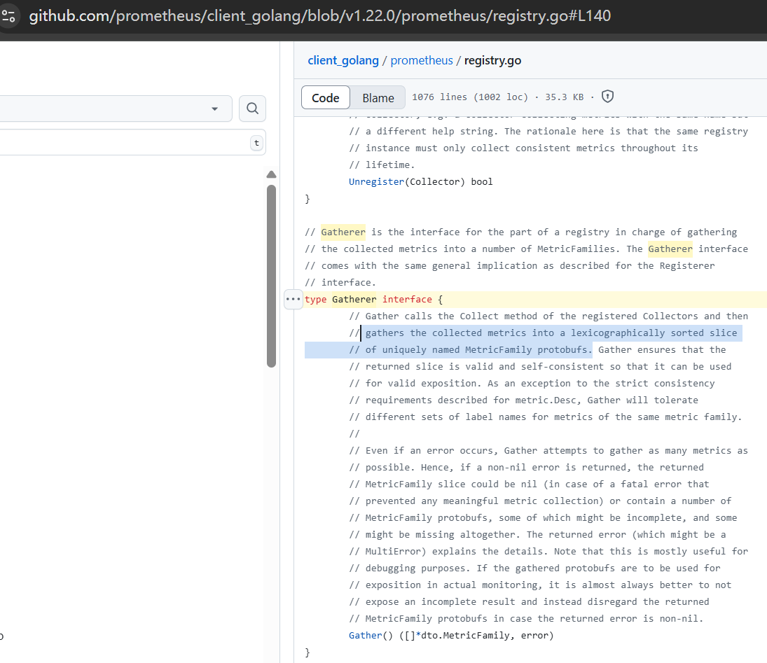 虽然MultiTRegistry.Gather 也显式做了排序,用的是 sort.Slice,但是我一时没有找到源码实现的部分,只在 Gatherer 接口的注释中,有明确写到:https://github.com/prometheus/client_golang/blob/v1.22.0/prometheus/registry.go#L140