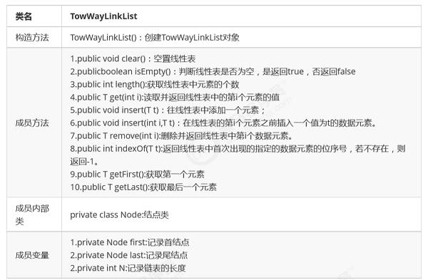 双向链表是链表的一种,由多个结点构成,每个结点都有一个数据域和两个指针域组成,数据域用来存储数据,其中一个指针域用来指向后继结点,另一个指针域用来指向前驱结点,链表的头结点不存储数据,指向前驱结点的指针域值为空,指向后继结点的指针域指向第一个真正存储数据的结点。
