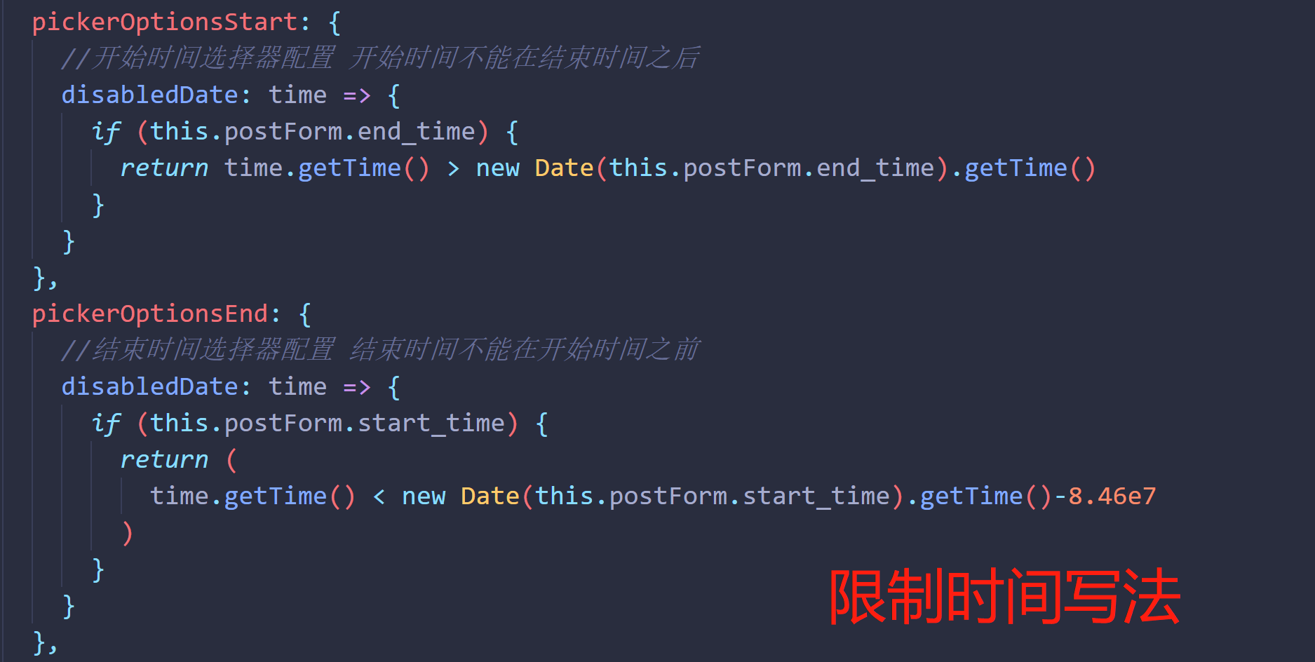 :picker-options=" " 通过这边设置时间限制