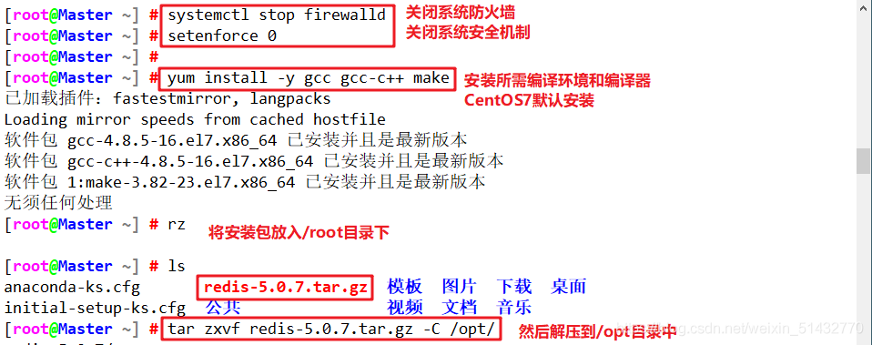tar zxvf redis-5.0.7.tar.gz -C /opt/