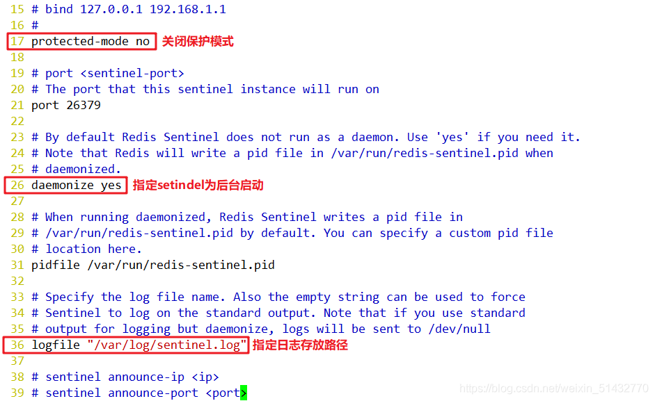 logfile "/var/log/sentinel.log" #36行,指定日志存放路径