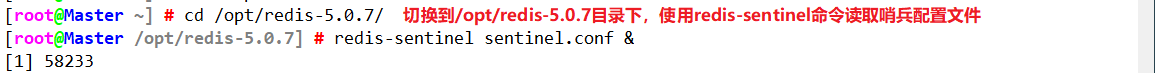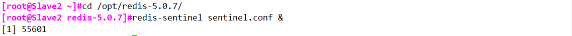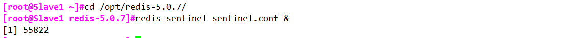 cd /opt/redis-5.0.7/ redis-sentinel sentinel.conf & 注意!先启动主服务器,再启动从服务器
