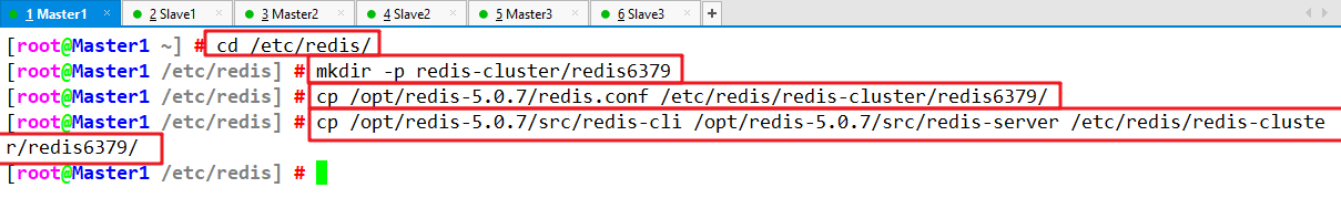 cp /opt/redis-5.0.7/src/redis-cli /opt/redis-5.0.7/src/redis-server /etc/redis/redis-cluster/redis6379/